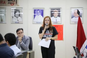 Alycia foi à sede da PF acompanhada dos advogados Pedro e Mayara, da Bancada Negra, para tomar as medidas cabíveis.